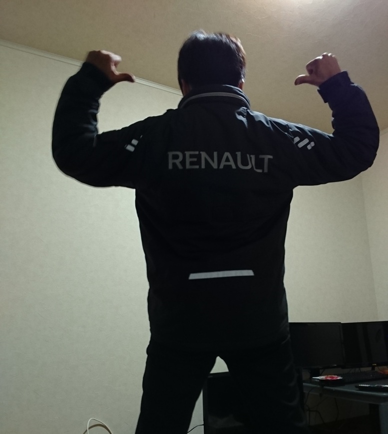 この写真は2019年4月、入社早々ルノーのユニフォームをいただいたのが嬉しくて一人で撮った写真ですね。懐かしい。